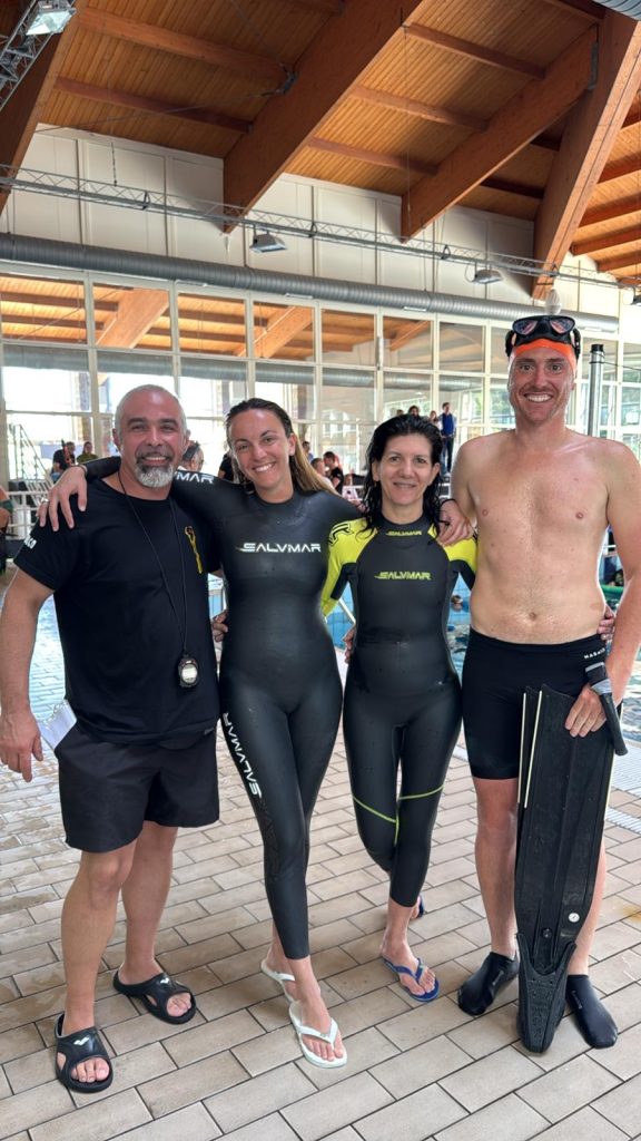 A partire dal 2024, il Circolo Sub Biella ha dato vita alla propria squadra agonistica, un gruppo giovane ma già capace di ottenere risultati concreti fin dall’anno di nascita. questi successi testimoniano la passione degli atleti e, soprattutto, la competenza e la qualità del lavoro svolto dagli istruttori del circolo, che guidano ogni percorso con attenzione, tecnica e grande professionalità. le prime competizioni affrontate riguardano l’apnea dinamica, con e senza attrezzi, suddivisa in categorie che richiedono il raggiungimento di distanze crescenti entro un tempo dichiarato dall’atleta: vince chi si avvicina di più al tempo stabilito, dimostrando controllo, esperienza e precisione.